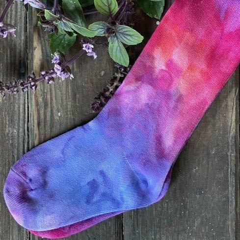 Made from 95% cotton, 5% elastane and hand dyed each and every pair of tights will be completely different and totally unique with it’s own amazing patterns and colour mixes. Three different colour ranges there is something for everyone.