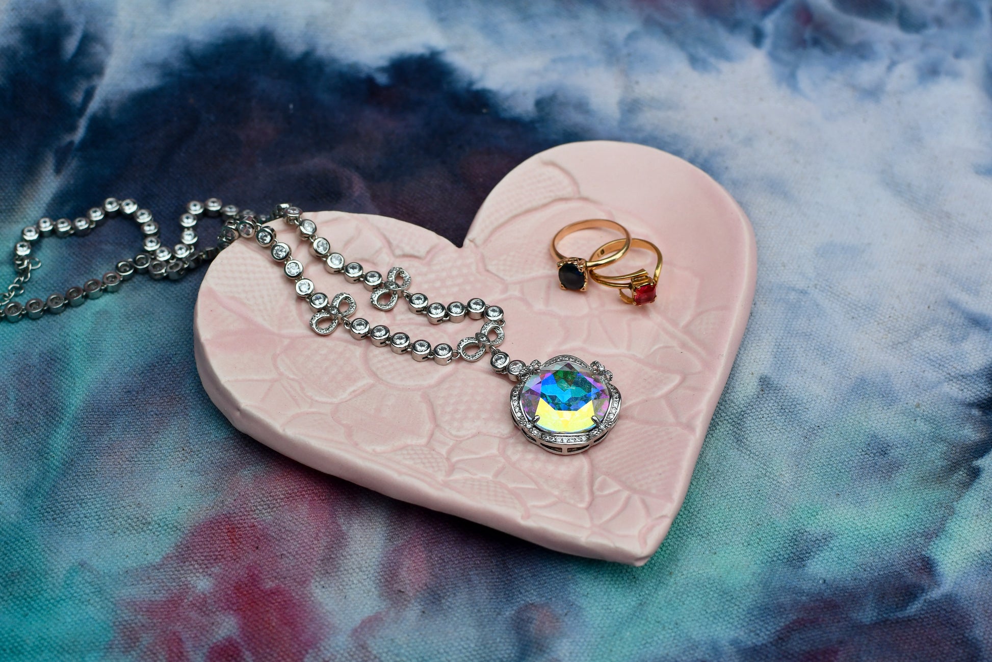 Spreading the handmade love with this love heart shaped ceramic dish made right here in Newcastle. Each dish has a different lace pattern with three different colours available. These ceramic heart dishes are handmade so every one will be different to the next with different lace patterns on each one, and subtle changes in the glaze colours due to the magic of firings and ceramics. We have sourced vintage tatted lace doilies in a variety of shapes and patterns and they are all beautiful to use. Use these dishes for jewellery, serving sweet treats or just to put on the wall and admire.