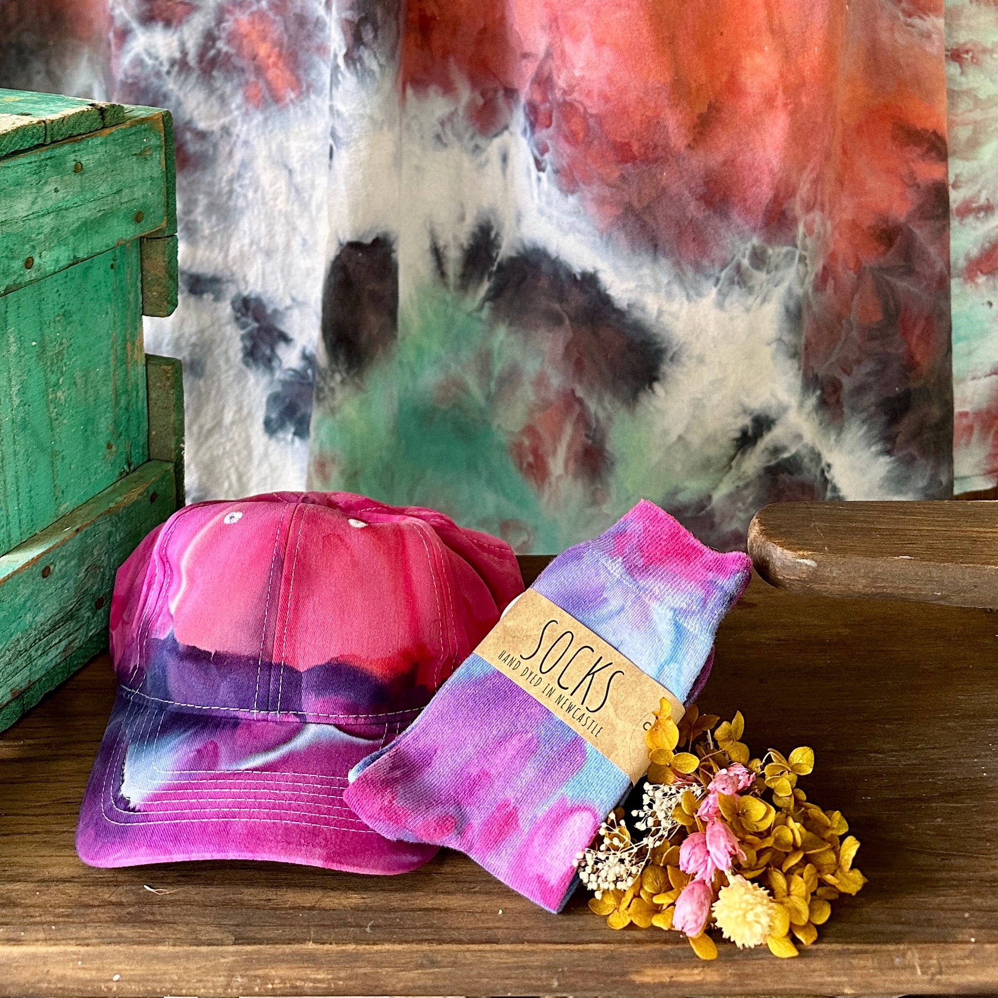 Please Note - Everything from Creative Village Newcastle is created by hand and there will be colour and pattern variations from item to item. We rinse out the socks to make sure all he excess dye is out, however we recommend you wash them separately for the first couple of washes.
